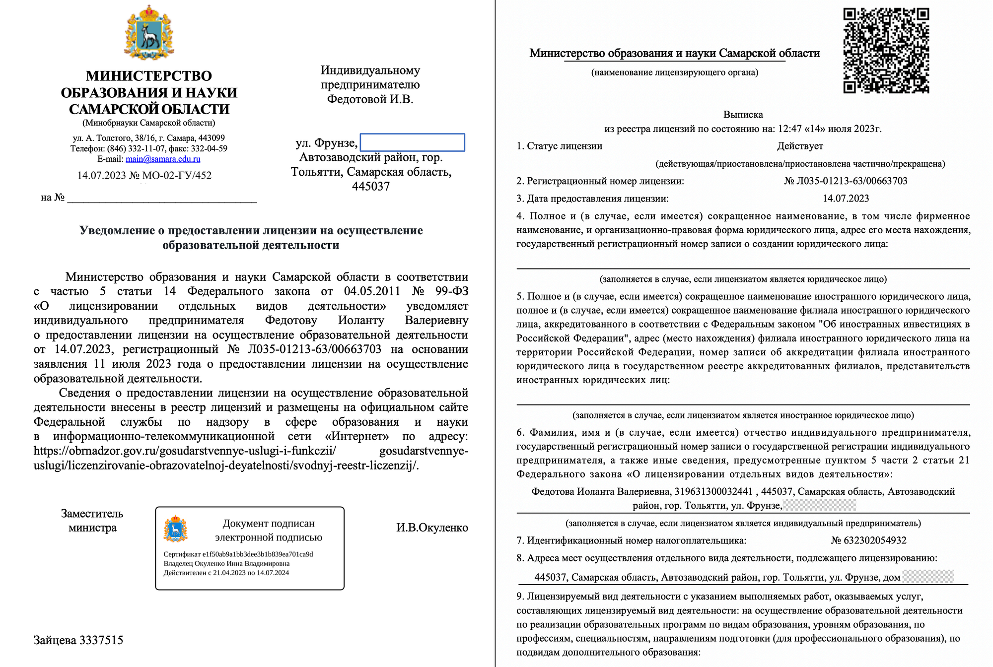 📎 Лицензия № Л035-01213-63/00663703 от 14.07.2023